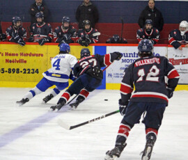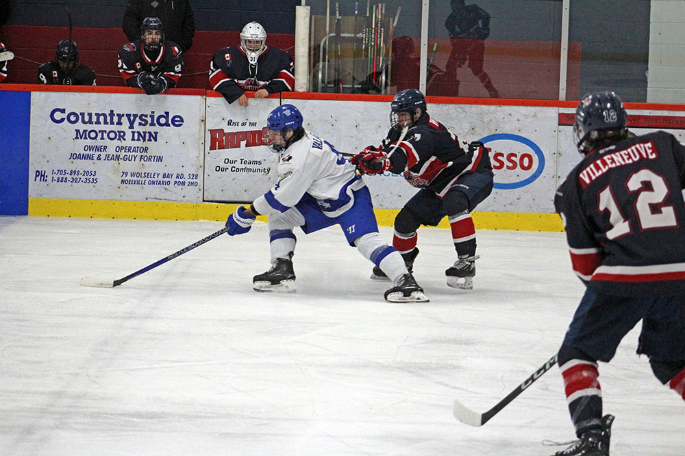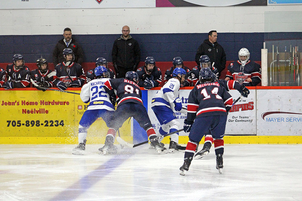 In the third, the Rapids’ Jeremy Clark finally solved Greater Sudbury goaltender Matthew Vahramian at 10:16 by collecting a draw won back to him by Aaron Maxwell and whipping it in from distance on a man advantage.