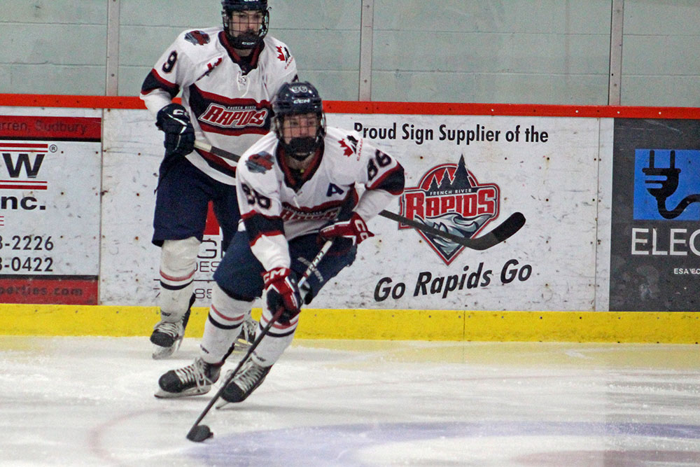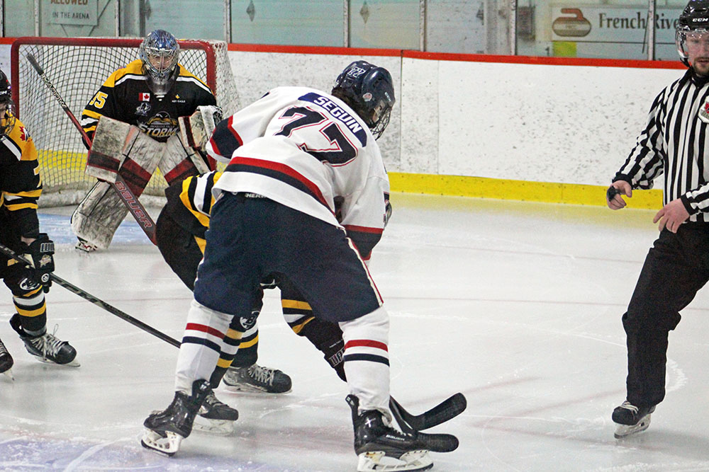 FRENCH RIVER – A Bryson Villeneuve marker 3:21 into overtime was the difference as the Iroquois Falls Storm skated away with a 4-3 triumph versus the French River Rapids in a tightly-contested Northern Ontario Junior Hockey League affair at Noelville Arena.